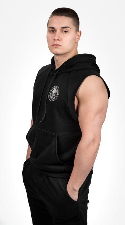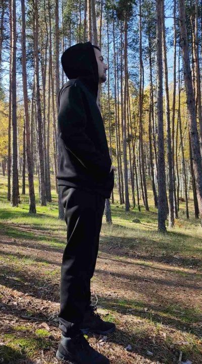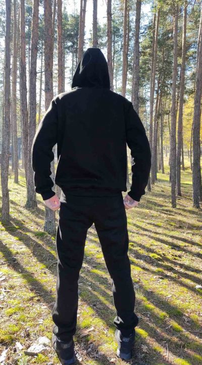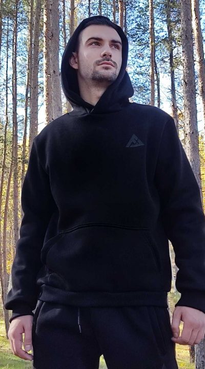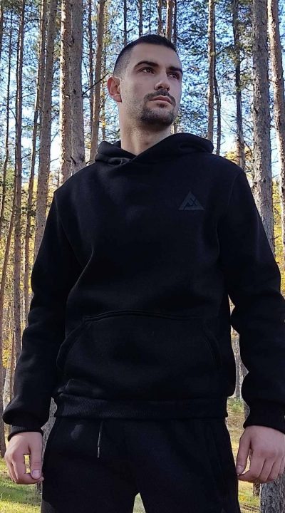 Мъжки спортен екип изработен от ватирана, памучна материя.Изключително мек и удобен.Суитчера е с практична качулка и джоб в предната част.Долнището е със свободна кройка, джобове и завършва с ластик в долната част на крачола.Гумираното лого дискретно акцентира и прави екипа така стилен и желан.Комплекта е подходящ както за спортни дейности, така и чудесно облекло за свободното време.