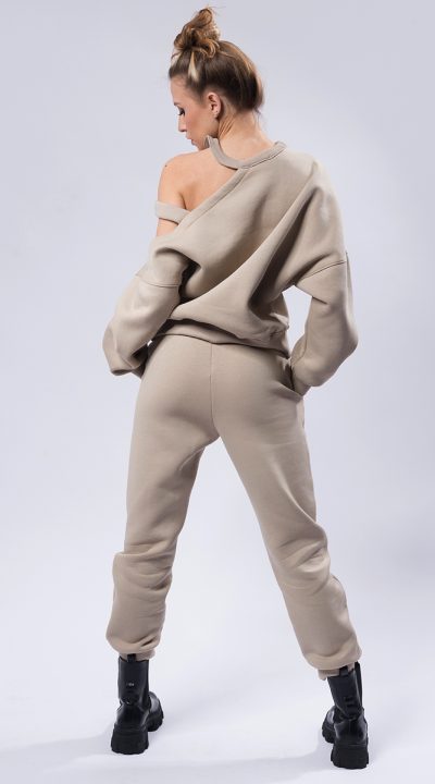 Дамска ватирана блуза в актуален бежов цвят.Изработена от изключително мека памучна материя.Свободна кройка с ефектно голо рамо.Чудесен избор за ежедневен аутфит.Удобна и секси, чудесно се комбинира както с спортен панталон така и с дънки или клин.