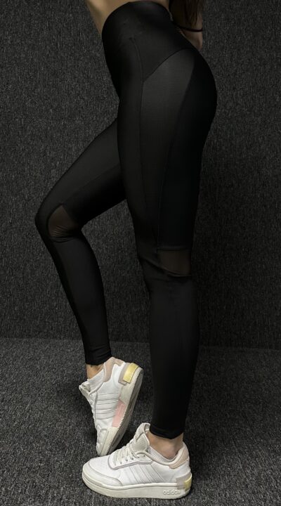 Дамски спортен клин в черен цвят.Изработен от еластична и оформяща материя.Уникална кройка с висока талия придаваща издължен и секси силует на модела. Мрежест акцент в задната част на крачола. Много удобен и практичен клин, който се комбинира страхотно с много артикули от колекцията на FIT ADDICTED.