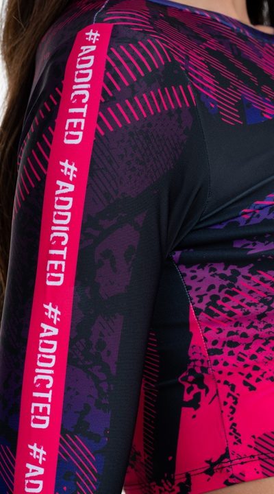 Спортна изрязана блузка с дълъг ръкав, изработена от висококачествена, еластична и фина материя. Непрозрачна и бързосъхнеща, приятна на допир до кожата дава усещане за комфорт и самочувствие. Тялото на спортиста и защитено и е запазена свободата на движение. Блузката е подходяща както за спорт, така и за активни занимания в ежедневието.