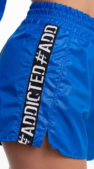 Къси шушлякови панталонки с ластик и връзки в горната част. Брандирана лента от двете страни и малки цепки за повече свобода на движение.
