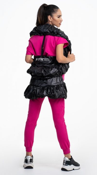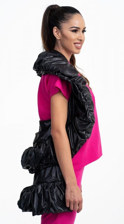 Шушляков елек с атрактивна кройка.Голия гръб, катарамите и брандираната лента го правят така желан аксесоар.Подходящ за всеки сезон, може да се носи върху топ или връхна дреха. Чудесно се комбинира с много от другите артикули на FIT ADDICTED.