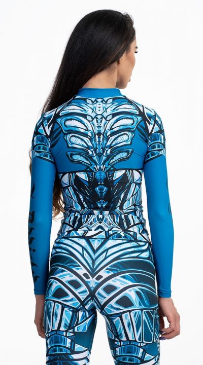 Дамска спортна блуза с дълъг ръкав и цип в предната част. Изработена от висококачествена, еластична и фина материя. Непрозрачна и бързосъхнеща, приятна на допир до кожата дава усещане за комфорт и самочувствие.Тялото на спортиста и защитено и е запазена свободата на движение. Блузката е подходяща както за спорт, така и за активни занимания в ежедневието.