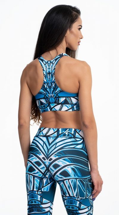 Спортно бюстие с изрязан гръб, ластик в долната си част и подплата. Изработено от висококачествена, еластична и плътна материя. Непрозрачна и бързосъхнеща, приятна на допир до кожата дава усещане за комфорт и самочувствие.Тялото на спортиста е защитено и е запазена свободата на движение. Бюстиетo е подходящо за различни спортни занимания и активни дейности в ежедневието.